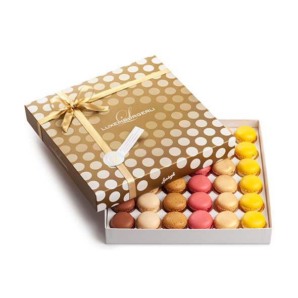 Überraschen Sie Ihre Liebsten mit einer selber zusammengestellten Geschenkpackung Luxemburgerli. Wählen Sie zwischen unwiderstehlichen Geschmackskreationen wie Vanille, Schokolade, Champagne Gold, Himbeere deluxe und Caramel/Fleur de Sel.