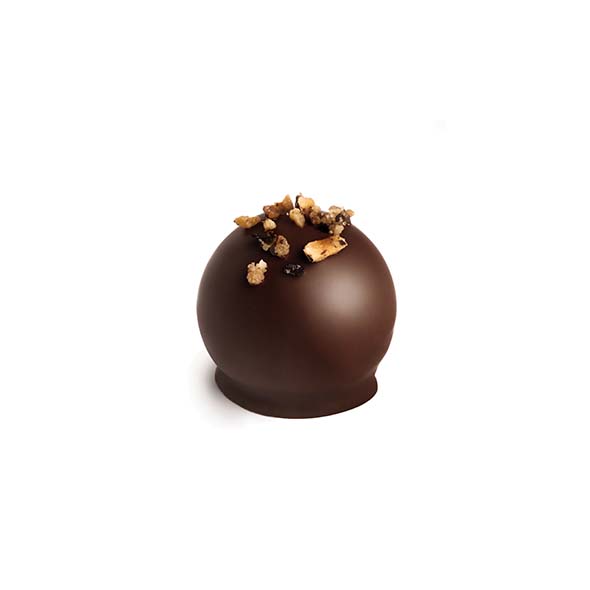 Cremige Frischrahmganache mit einem Kern aus Haselnuss-Gianduja, verfeinert mit aromatischer Tonkabohne und umhüllt von edler Grand Cru-Schokolade Maracaibo, 65 % – täglich frisch für Sie hergestellt.
