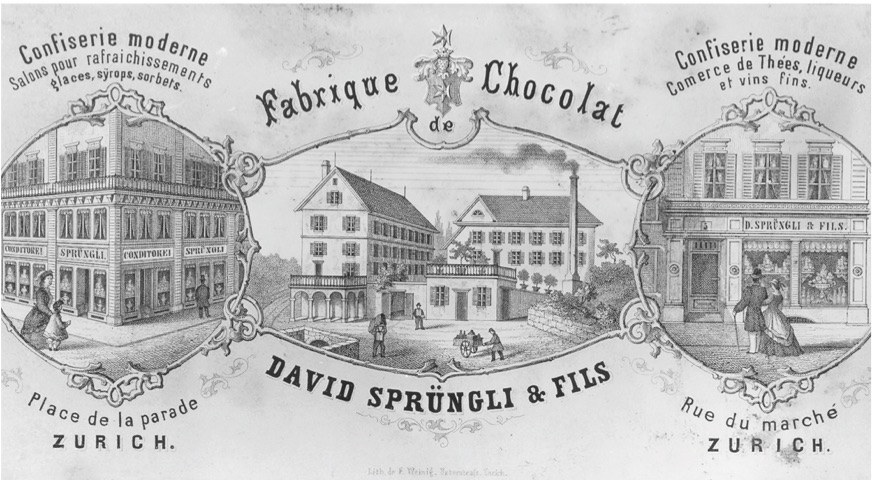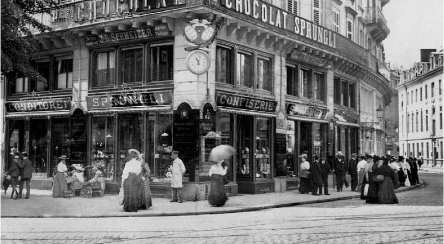 Mit dem Erwerb der Zuckerbäckerei Vogel an der Marktgasse in Zürich legte er 1836 den Grundstein für diese Erfolgsgeschichte. Bereits 1845 begann unter dem Namen David Sprüngli & Fils die Schokoladenproduktion – damals echte Pionierarbeit. 1859 öffnete die Confiserie am Zürcher Paradeplatz, der sich später mit der neu entstandenen Bahnhofstrasse zu einer der bedeutendsten Einkaufsmeilen Europas entwickelte.